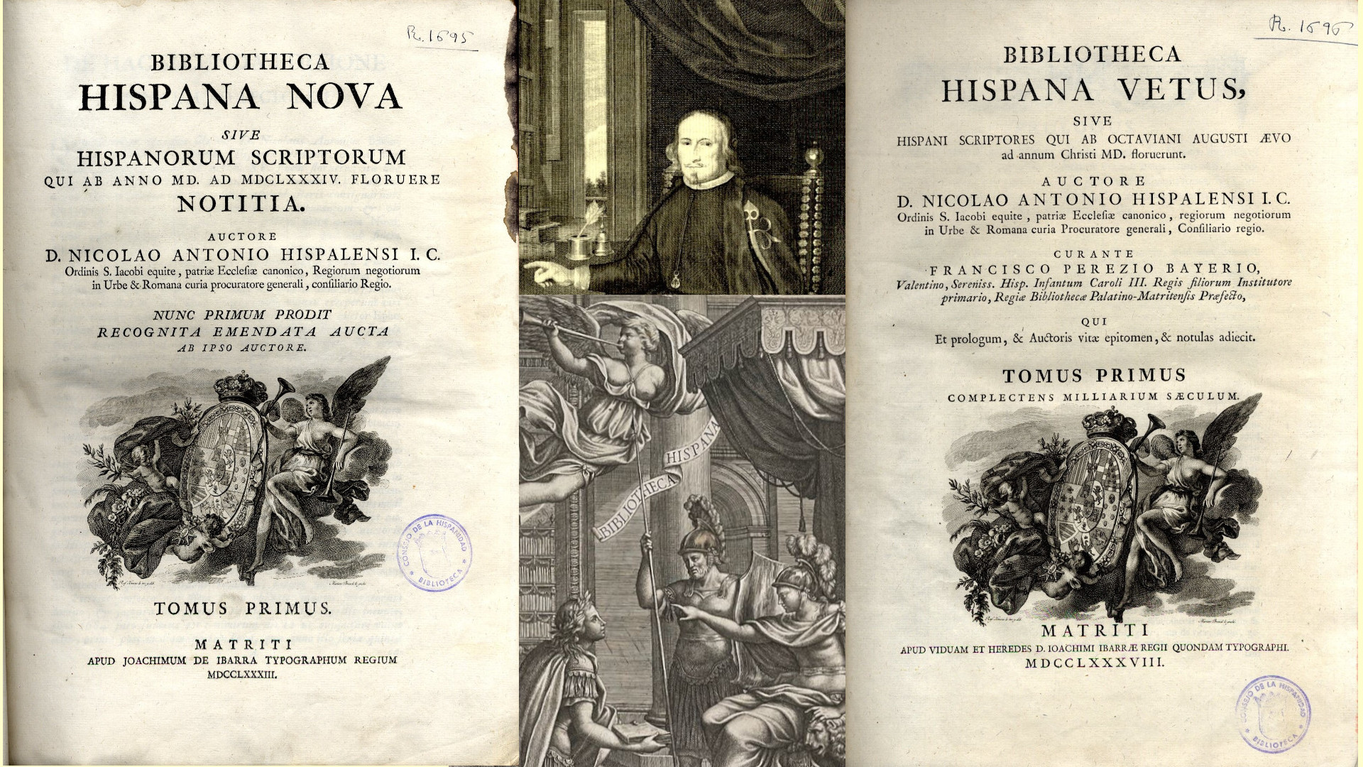 • 1783-1788 (Madrid), Bibliotheca Hispana Nova (2 vols.) (signatura 3RC-483 1/2), edición de Francisco Pérez Bayer. Registra los escritores españoles que destacaron entre 1500 y los años del autor. Se incorporan al primer texto (impreso en Roma en 1672) numerosas adiciones y correcciones que el autor hizo en los últimos años de su vida. Escrita en latín y dispuesta en forma de diccionario, se ordena alfabéticamente por el nombre propio del autor. Está acompañada de varios índices que facilitan su manejo.