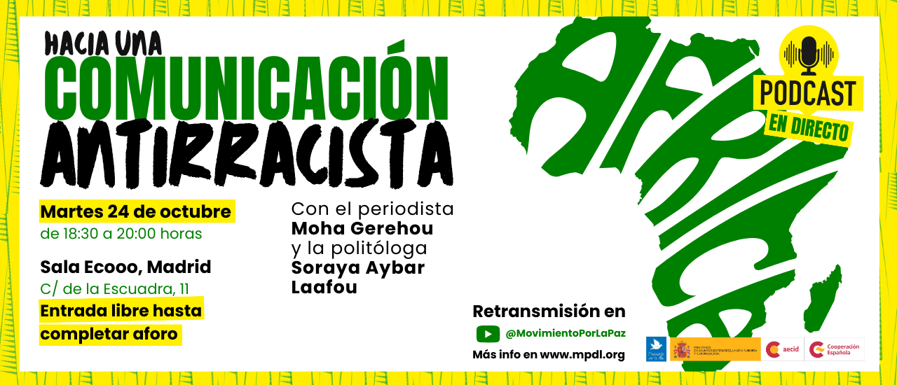 Desde la ONG el Movimiento por la Paz -MPDL- se invita a comunicadores/as, periodistas, estudiantes y profesionales de cualquier otra disciplina interesadas en influir en la configuración de nuevas narrativas sobre África y las personas africanas o afrodescendientes, libres de estereotipos, que no alimenten actitudes y comportamientos racistas o xenófobos y partan de la comunicación para la paz.