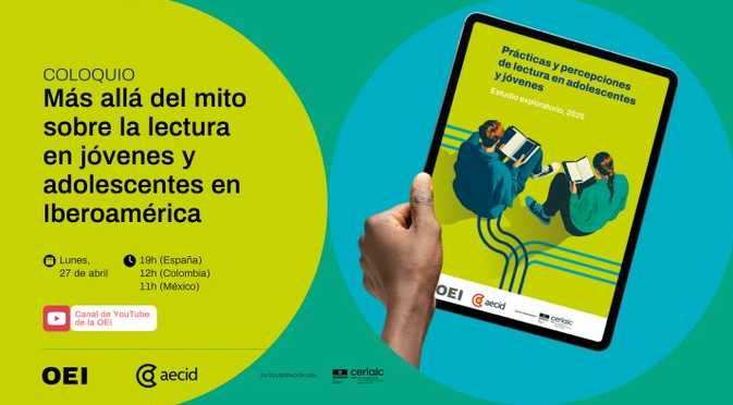 La Organización de Estados Iberoamericanos (OEI), en colaboración con el CERLALC y la AECID, organiza este coloquio internacional para analizar las prácticas lectoras en una etapa decisiva para el desarrollo humano: la adolescencia y la juventud. El evento se celebra en el marco de las actividades por el Día del Libro y sirve como plataforma para la presentación del estudio “Prácticas y percepciones de lectura en adolescentes y jóvenes en Iberoamérica”. Este informe, que cuenta con el apoyo de la Cooperación Española, ofrece una mirada actualizada sobre cómo las nuevas generaciones se vinculan con la cultura escrita, la oralidad y los diversos formatos digitales. El objetivo principal es identificar desafíos y oportunidades para el diseño de políticas públicas educativas y culturales más eficaces, promoviendo ecosistemas de lectura inclusivos, diversos y sostenibles que fortalezcan el ejercicio de la ciudadanía en la región. Información del evento Fecha: 27 de abril Horario: 19:00 h – 20:00 h (Hora España). Modalidad: Online (Transmisión en directo). Participantes destacados: Mariano Jabonero (Secretario General de la OEI) y Sergio Ramírez (escritor y periodista). Programa 19:00 h: Bienvenida y presentación del estudio. 19:10 h: Diálogo en torno a la lectura en jóvenes iberoamericanos con la participación de expertos y referentes del sector. 🔗 Sigue la transmisión en directo aquí
