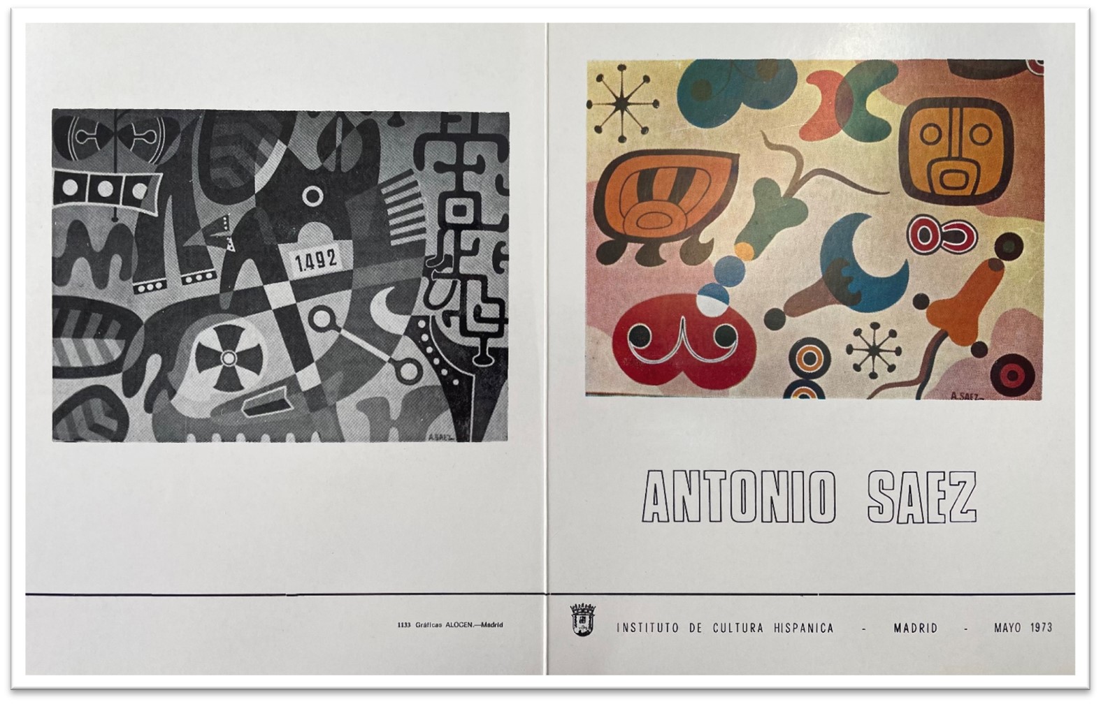 Tras una estancia en México, Sáez expuso individualmente en las salas del Instituto de Cultura Hispánica en mayo de 1973. Esta obra aparece reproducida al dorso del díptico que contiene un texto del artista y el listado de los cuadros. Posteriormente pasó a formar parte de la colección, y recientemente, se expuso en la muestra Antes de América. Fuentes originarias en la cultura moderna (Fundación Juan March, Madrid, 2023–2024).